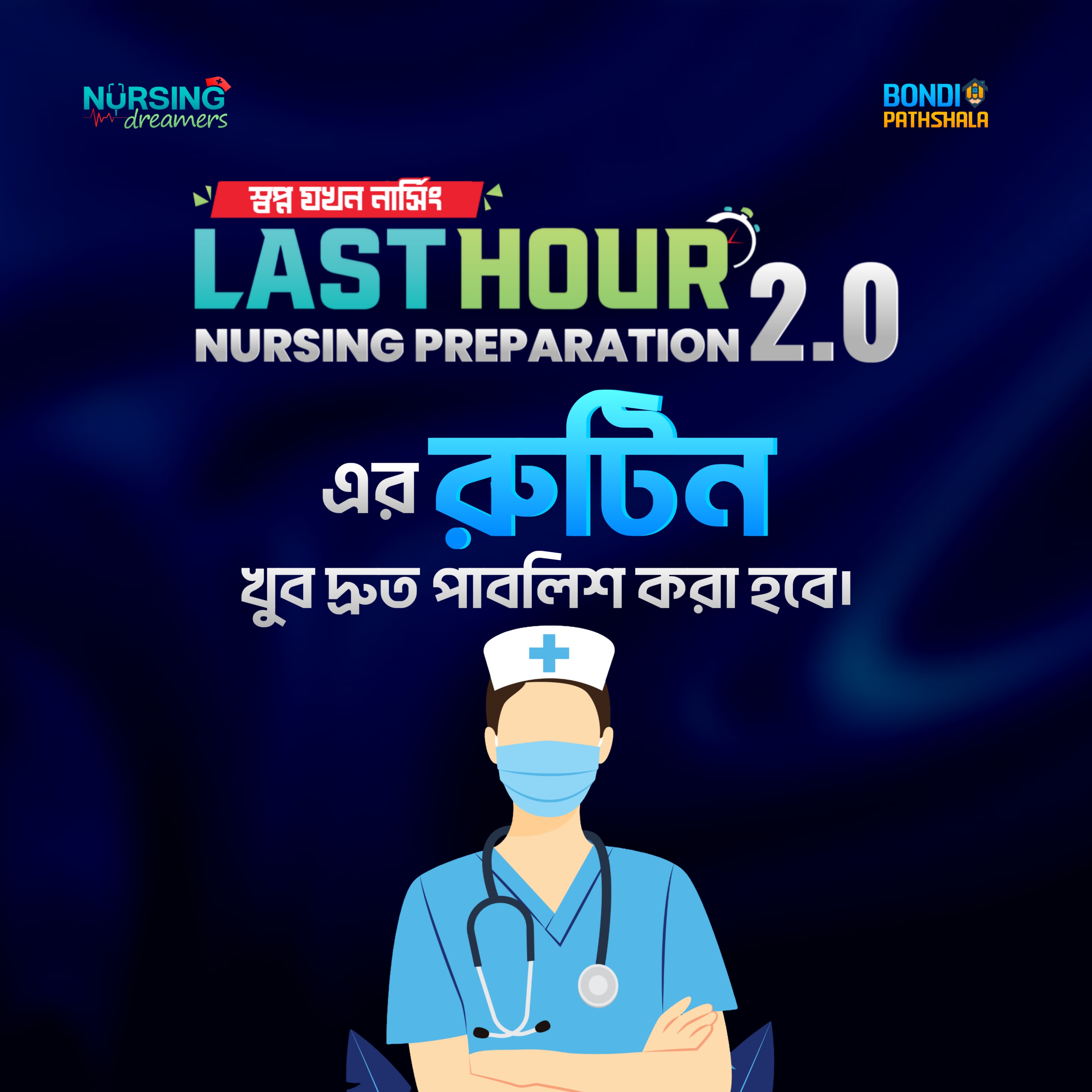বর্তমানে নার্সিং এডমিশন শিক্ষার্থীদের জন্য বাংলাদেশের সবচেয়ে জনপ্রিয় এবং বিশ্বাসযোগ্য প্লাটফর্ম Nursing Dreamers-বন্দি পাঠশালা যার যাত্রা শুরু হয়েছিলো Last Hour Nursing Preparation কোর্সটির হাত ধরে। ২০২৪-২৫ সেশনে বন্দি পাঠশালার এই অনলাইন কোর্সটি থেকেই প্রথম বছরেই পুরো বাংলাদেশে জাতীয় মেধায় ৫ম,৭ম,৮ম,১০ম,২০তম সহ ৫২০+ শিক্ষার্থী বিভিন্ন সরকারি নার্সিং কলেজগুলোতে চান্স পেয়েছে যেখানে শুধুমাত্র ঢাকা নার্সিং কলেজে সেরা ১০০ জনের মধ্যে ২৩ জন ই আমাদের এই কোর্সের শিক্ষার্থী। যারা প্রস্তুত, তাদের জন্য এটা রিভিশন। আর যারা এখনও ভয় পাচ্ছে, তাদের জন্য এটা রিবিল্ড। আশা করছি এবার আমরা আমাদের পূর্বের সফলতাকেও ছাড়িয়ে যাবো তোমাদের হাত ধরেই ইনশাআল্লাহ।