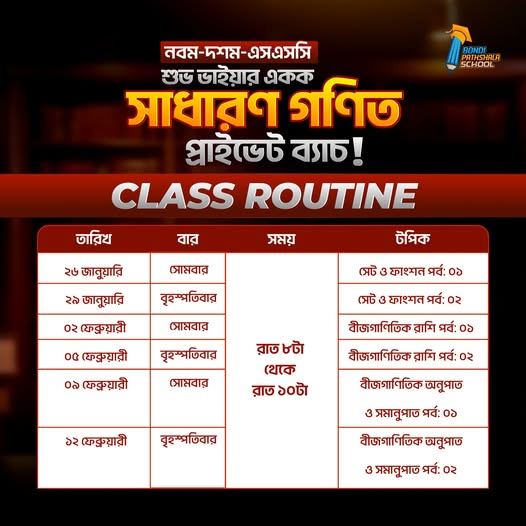 সাধারণ গণিত প্রাইভেট ব্যাচ - নবম শ্রেণী