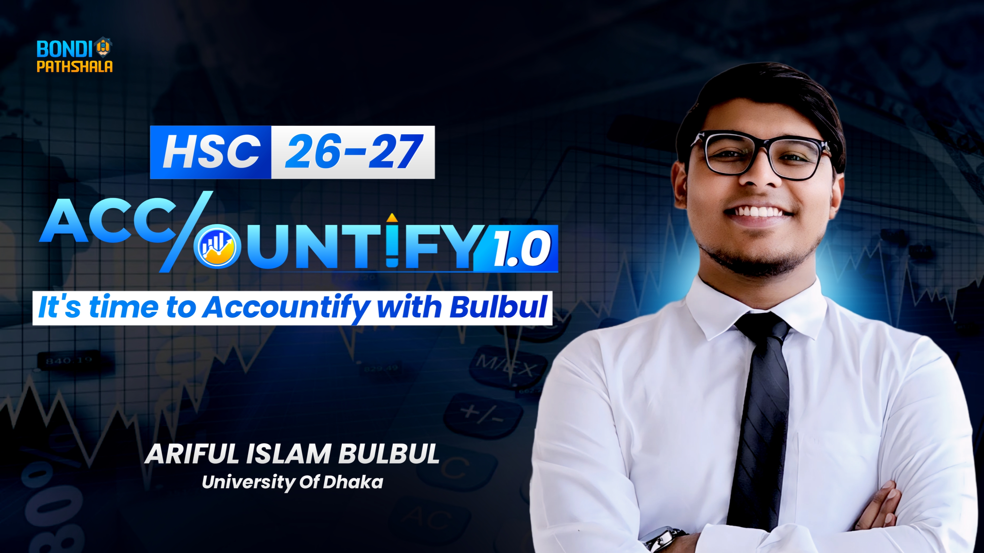 "একাউন্টিং মানেই ভয়ের বিষয়" — এই ভুল ধারণা বদলাতে আমরা নিয়ে এসেছি HSC ২৭ শিক্ষার্থীদের জন্য একেবারে নতুন ধারার Accounting কোর্স। এই কোর্সে তুমি পাচ্ছ একাউন্টিং বিষয়ের প্রতিটি অধ্যায়ের সহজ, ধারাবাহিক এবং বাস্তবসম্মত উপস্থাপনা। জটিল হিসাব, জার্নাল, ব্যালেন্স শিট , লেজার বা আর্থিক বিবরণীর মতো অধ্যায়গুলোকে উপস্থাপন করা হয়েছে এমনভাবে, যেন যেকোনো শিক্ষার্থী ধাপে ধাপে বুঝতে পারে এবং নিজের মতো করে প্র্যাকটিস করতে পারে। সারাদেশের হাজারো শিক্ষার্থীর একাডেমিক দুর্বলতা, পরীক্ষাভীতি এবং কনফিউশনকে মাথায় রেখে এই কোর্সের প্রতিটি ক্লাস, নোট এবং পরীক্ষাগুলো তৈরি করা হয়েছে। এখানে শুধু পড়ানো হবে না, শেখানো হবে — কিভাবে বোর্ড পরীক্ষায় সর্বোচ্চ মার্ক তুলতে হয় এবং বিশ্ববিদ্যালয় ভর্তি পরীক্ষায় একাউন্টিং-এ কমন পেতে হয়। এই কোর্সে গাইড করবেন অভিজ্ঞ শিক্ষক – যার হাতে গড়া আছে শত শত সফল শিক্ষার্থীর গল্প। তুমি থাকবে তাঁদের সরাসরি তত্ত্বাবধানে, পেয়ে যাবেন ক্লাসের রেকর্ড, হ্যান্ডনোট, নিয়মিত পরীক্ষা এবং পার্সোনাল গাইডেন্স। এটি কোনো সাধারণ কোর্স নয় — এটি হবে তোমাদের সফলতার যাত্রার পথপ্রদর্শক!